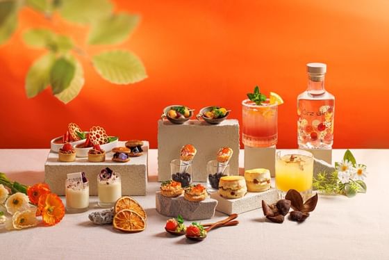 帝樂文娜公館首次與澳洲手工氈酒 Orz Gin 合作,以其獨特陳皮主調的氈酒為靈感,攜手呈獻「橘香茉語」微醺下午茶,爲賓客帶來清新的微醺春日體驗。